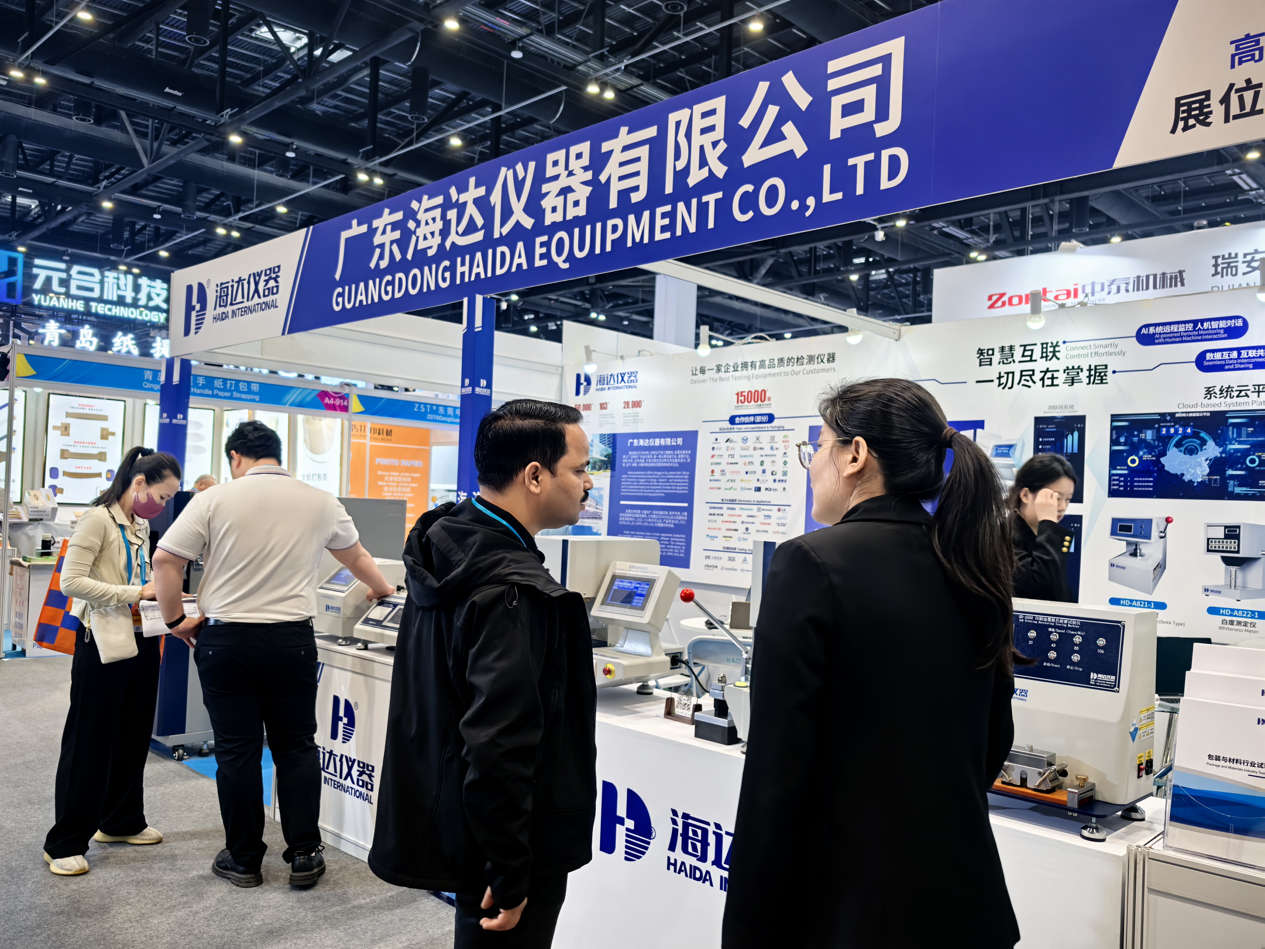 此次展會,海達儀器展出多款核心設備,覆蓋材料強度、環境模擬、印刷耐久性等檢測場景,旨在結合AI+檢測儀器,展示智能質檢解決方案;賦能客戶價值增長,以高精度、高效率的檢測設備,助力客戶實現生產標準化與品質國際化。